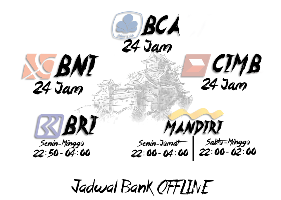 Diatas merupakan jadwal bank OffLine yang ada pada bank yang tersedia di atas dan kami juga menerima
